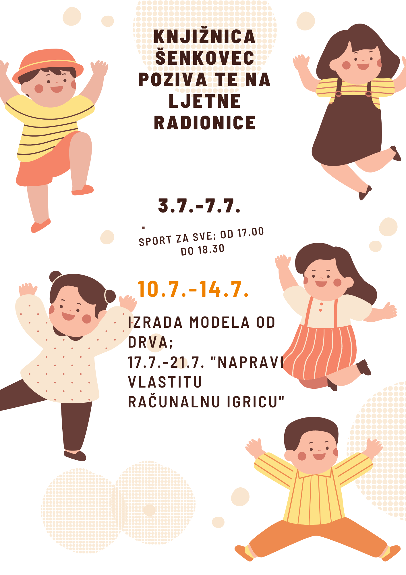 Sve će se radionice odvijati u vremenu od 17.00 do 18.30 h. Pridružite nam se.