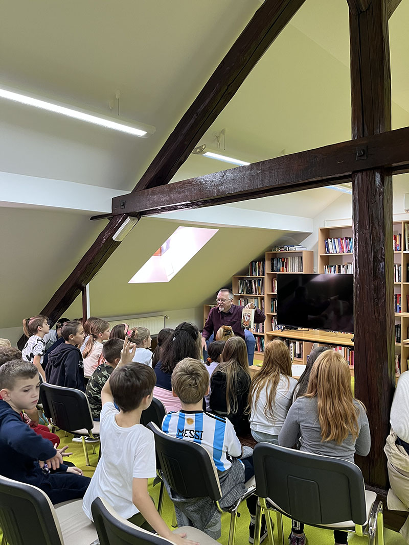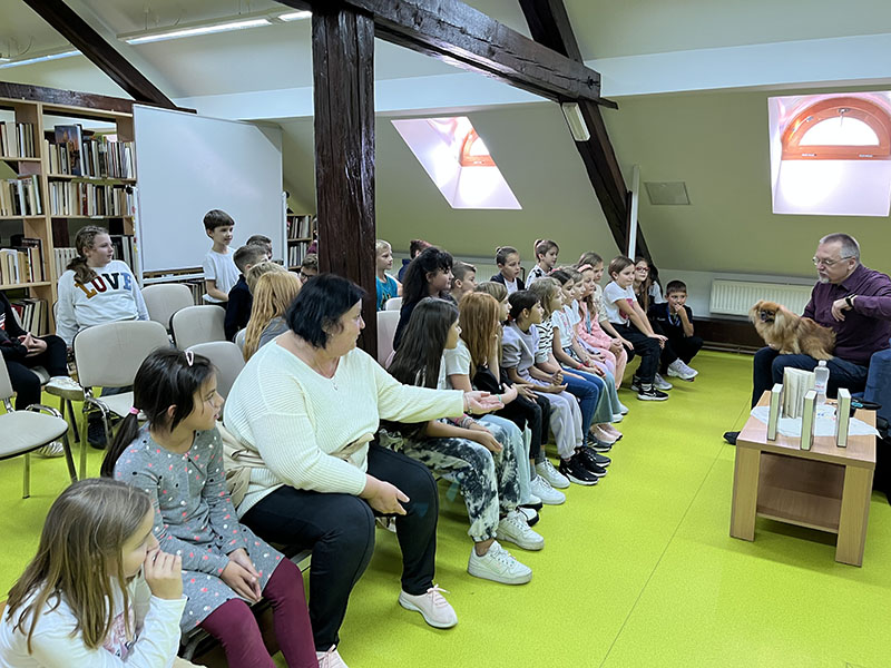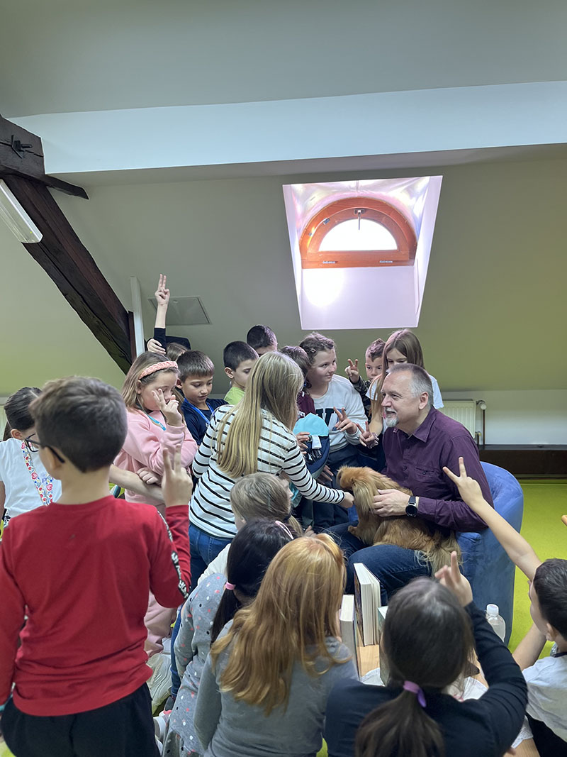 Ovaj tjedan imali smo priliku ugostiti u knjižnici učenike trećih razreda Osnovne škole "Petar Zrinski " Šenkovec te g. Krunoslava Mikulana koji je predstavio svoje romane "Zmaj ispod starog grada", "Škola u opasnosti", " Noć crnoga sunca" i "Pekinezer Princ u službi Njezina Veličanstva". Da je gospodin Mikulan djeci jako zanimljiv pisac postalo je jasno u trenutku kada neki nisu mogli odoljeti i počeli su čitati odlomke iz izloženih romana još za vrijeme predstavljanja. No najveća zvijezda dana bio je pas, preciznije pekinezer Princ (odnosno tajni agent AA7, kojeg je engleska kraljica poslala u tajnu misiju u daleku i tajanstvenu zemlju Hrvatsku.)