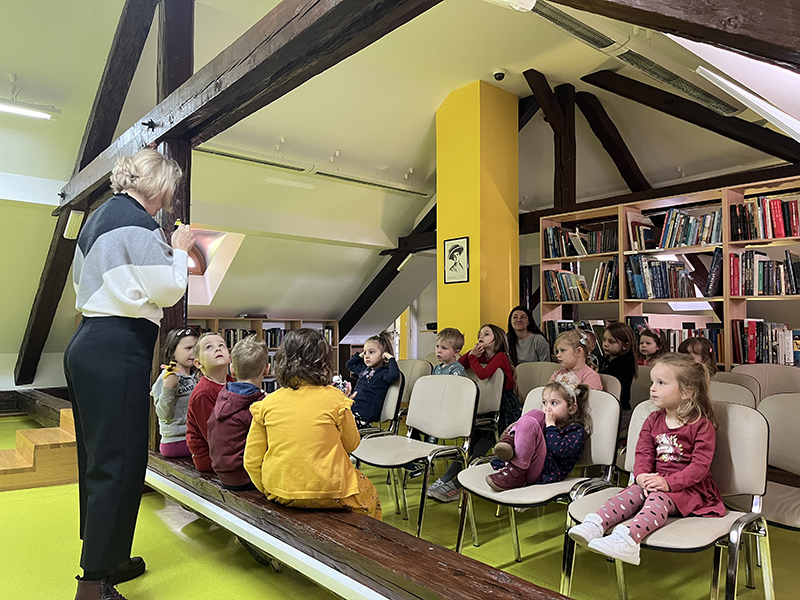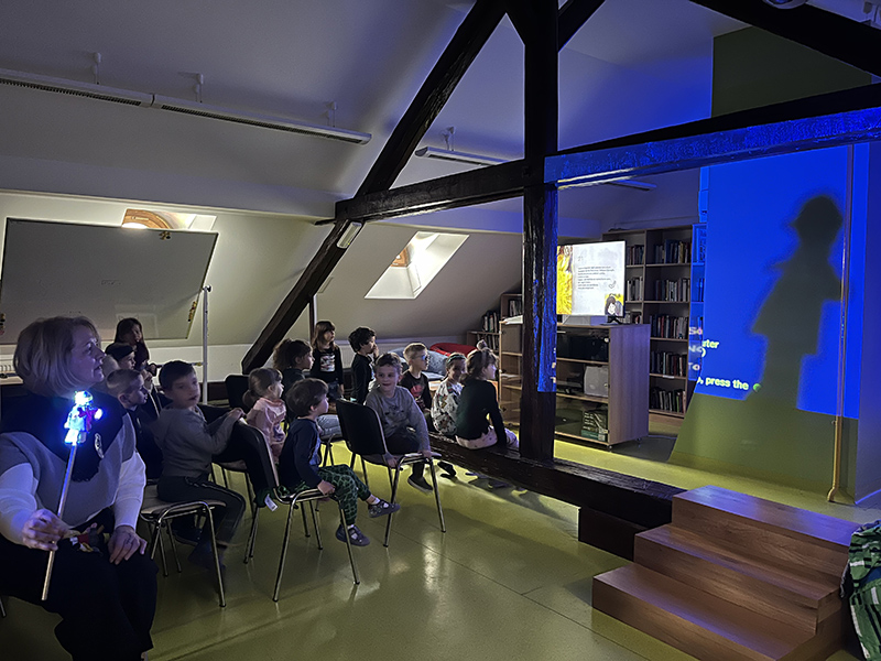 Naš hrvatski Andersen upoznao nas je s likovima staroslavenske mitologije na radost i veselje Gjure Nachitanovitza pokrovitelja ovogodišnje Noći knjige. Naravno, i sve nas u potkrovlju oduševili su čudesni likovi priče. Kad smo ih upoznali, tko su, što rade, kako se ponašaju nije ih bilo teško odglumiti. Zato je u potkrovlju puhao i jak i nježan vjetar sve u režiji našeg Stribora, ali su se i veselili i kreveljili nestašni Domaći. Neki od njih su iz knjižnice pobjegli u vrtić pa je u tijeku potraga za nestašnim junacima. Imali smo i guju koja se pretvorila u divnu djevojku a koja je znala pažljivo skrivati svoj zmijski jezik. Majka koja jako voli svoga sina junakinja je priče u kojoj pobjeđuje ljubav i mudrost. Njenoj sreći nema kraja kad se sin pokaje i oženi siromašnu djevojku s triješćem. Dodatnu čaroliju smo napravili kad smo se iskušali u stvaranju ili pogađanju likova prema sjeni.
