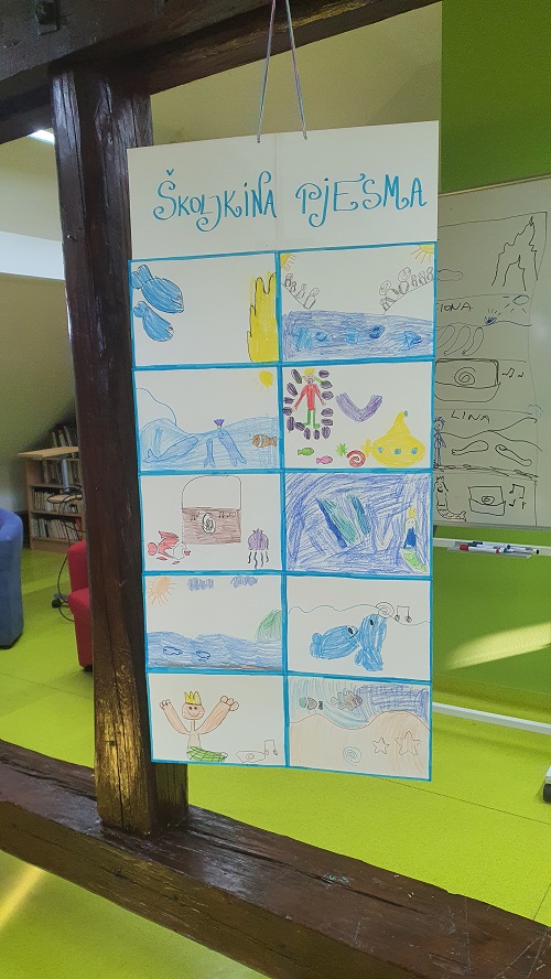 Treći dan su pobliže otkrivali svijet pripovijedanja te naučili kako pripovjedači pričaju u slikama. Najprije su poslušali priču "Školjkina pjesma", potom su odgonetnuli slike u priči koje su zatim nacrtali u obliku mini-stripopriče, a nakon toga su izradili i veeeliku stripopriču za uspomenu i dar knjižnici. Djeca su bila jako ponosna na svoj rad.