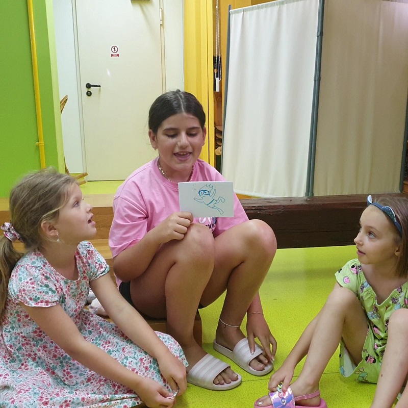 Četvrti dan su postali pravi pripovjedači! Naučili su osnovne pripremne vježbe koje pripovjedači rade prije svakog nastupa, a najzanimljivije su bile jezikolomke. Potom su igrali različite igre pripovijedanja - pričali su priče o izgubljenim stvarima, putovali su podmornicom i raketom, a potom su i sami osmislili svoju vlastitu morsku priču! Djeca su bila jako radosna i rado su sudjelovala u svakoj aktivnosti. Spontano i uz igru vježbali su svoje govorne vještine te javni nastup. Otkrili su nepresušno vrelo priča u njima samima.