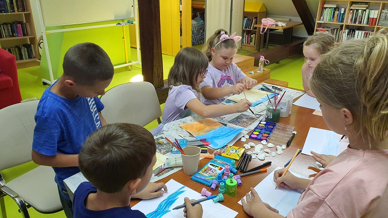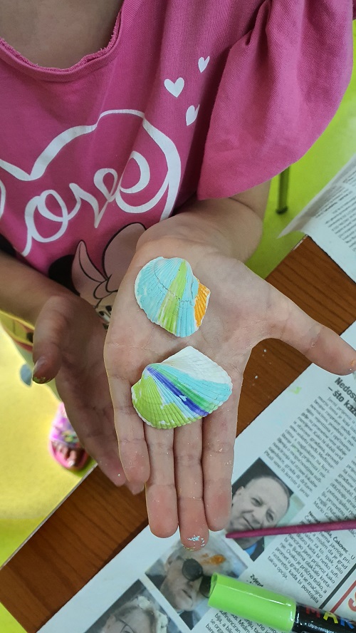 Prošli tjedan u Knjižnici i čitaonici Šenkovec pripovjedačica Petra Balić održala je ciklus kreativnih radionica uz storytelling. Prvi dan bio je rezerviran za igru i likovne vještine. Najprije su djeca slušala priču “Dar od školjki”, a zatim su zaigrali igre sa školjkama – potragu za školjkama, memory sa školjkama te igru “Pogodi gdje je školjkica”. Potom su izrađivali origami školjkice, a naposljetku su različitim likovnim tehnikama oslikavali najdraže prizore iz priče koju su čuli.